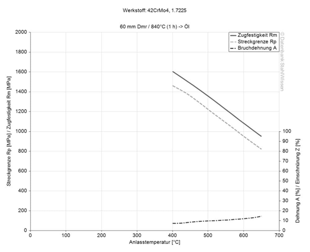 The tensile strength for the 1.7227+QT is at max. 900 N/mm2. The tensile strength indicates the maximum load capacity. To obtain this information, a tensile test is carried out to determine how much force is required to elongate or stretch a sample before it breaks.