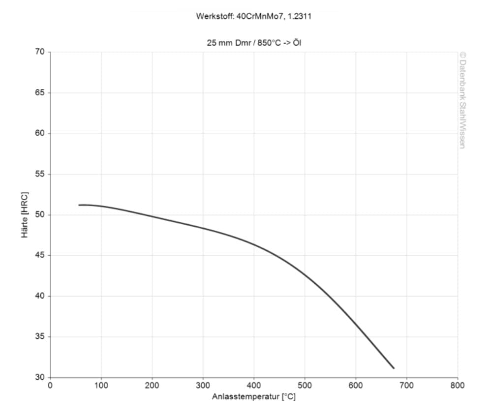 It has a high through-hardenability and uniform component strength which is an advantage when maintaining consistent performance of tools and moulds. For a higher hardness the 1.2311 can be further hardened but its hardenability is compared to other tool steels limited. In addition this steel grade is not suited for applications with high stresses.