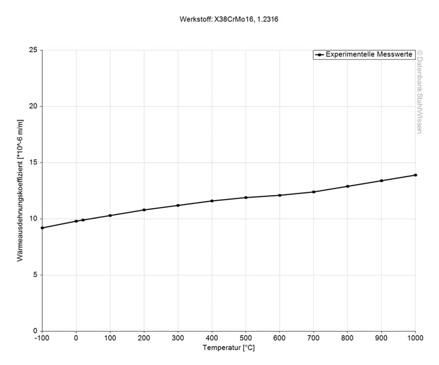 The specific heat capacity of tool steel 1.2316 at room temperature is 0.46 J/kg*K. This value indicates how much heat is required to heat a certain amount of material by 1 Kelvin.