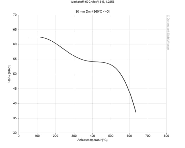 The 1.2358 (60CrMoV18-5) is a tempered medium alloed tool steel with a focus on cold work. It is possible to use this steel at low temperatur impact for hot work tools as well. Due to its high wear resistance and impact toughness the 1.2358 is used for plastic moulds, forming tools and embossing tools.