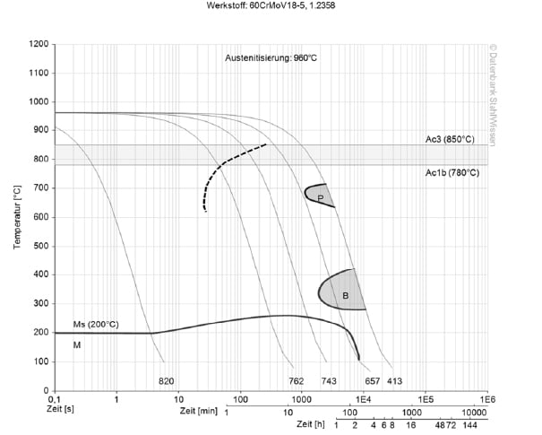 This diagram shows micro-changes over time at different temperatures. These are important in heat treatment because they provide information about the optimal conditions for processes such as hardening, annealing and normalising.