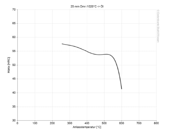 The working hardness for this steel grade is at approx. 53 – 58 HRC.
