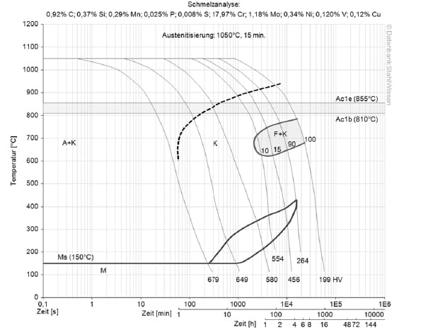 The TTT-diagram usually shows micro-changes over time at different temperature. These are important in heat treatment as they provide information on the optimal conditions for processes such as hardening, annealing and normalising.