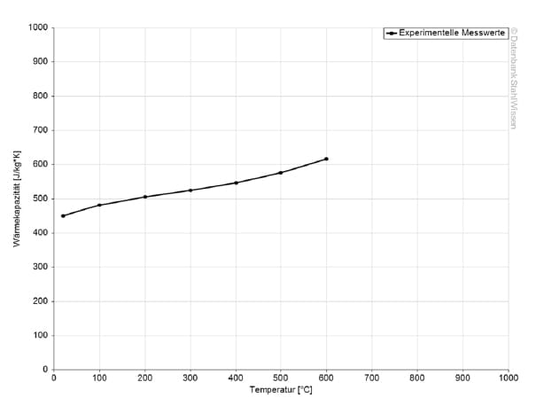 The specific heat capacity of 1.2361 at room temperature is 0.46 J/g*K. This value indicates how much heat is required to heat a certain amount of material by 1 Kelvin.