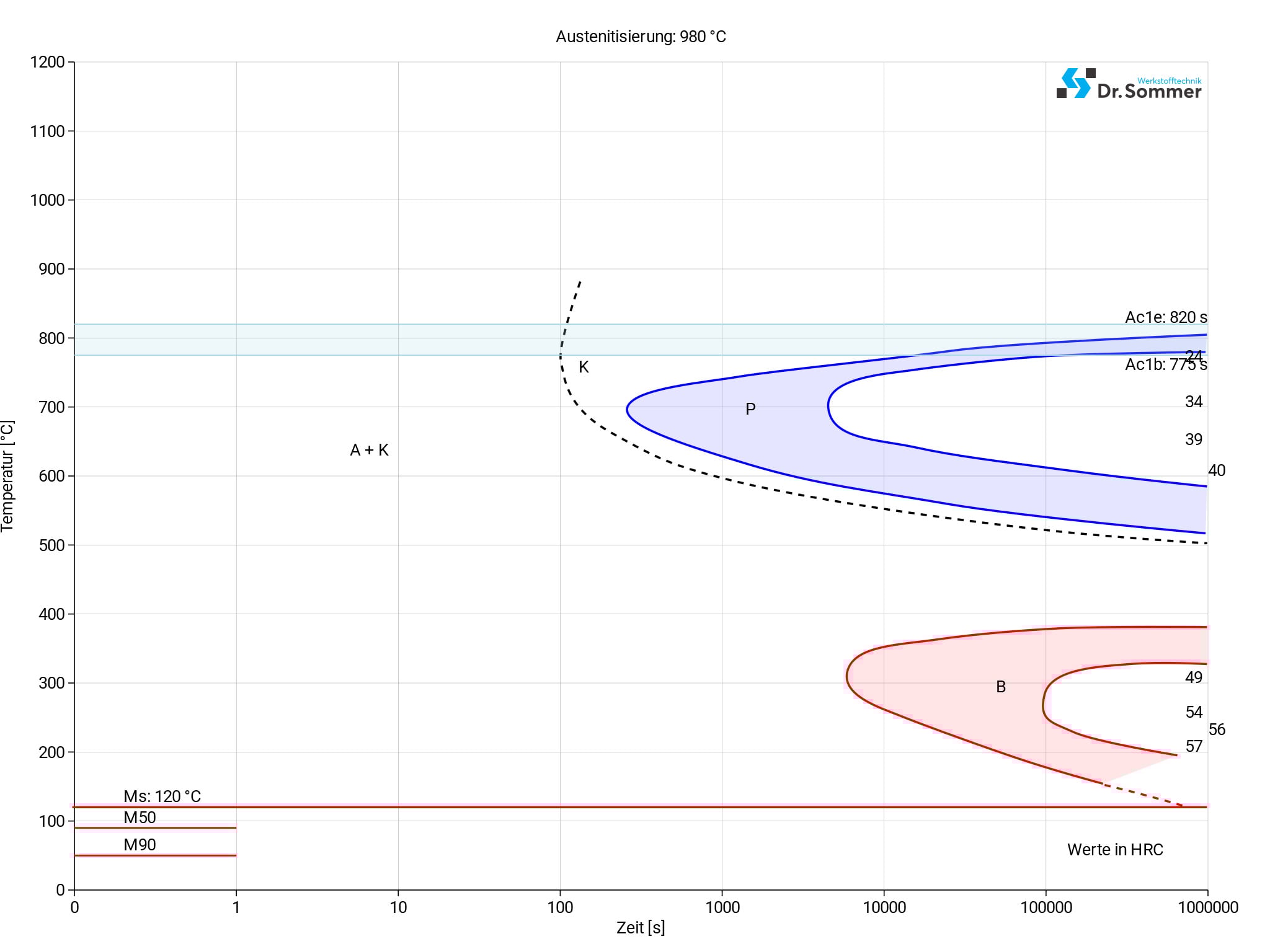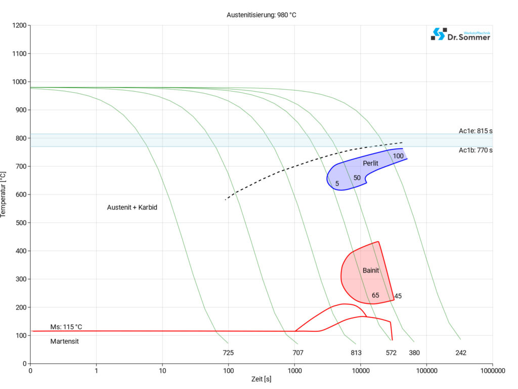 This diagram shows the structural changes at micro level over time at a constant temperatur. It shows at which temperatures after what time the different phases like perlit, martensite or bainite start to form.
