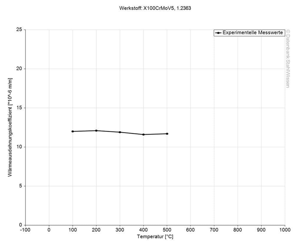 This diagram shows how much the 1.2363 can expand or contract when temperatures change. This can be very important when working with high temperatures or significant temperature fluctuations.