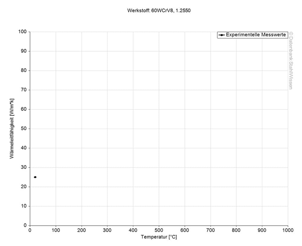 The following table shows the heat conductivity for tool steel 1.2550 at various temperatures.