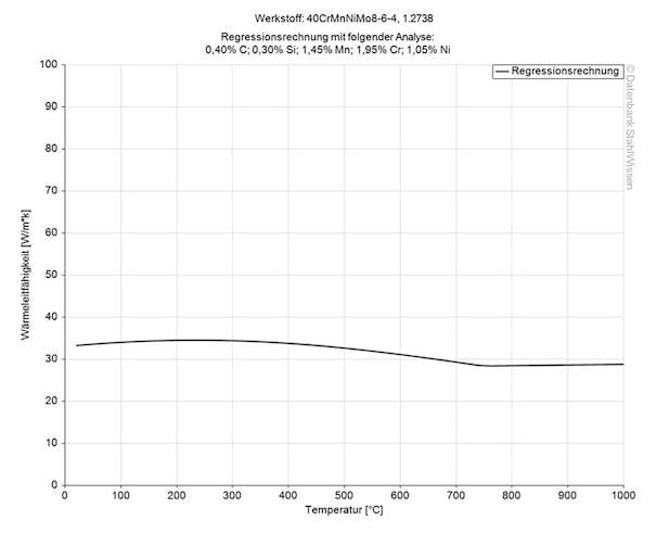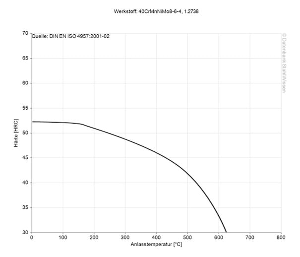 Das Spannungs- und Dehnungsmodul oder das Elastizitätsmodul (Youngscher Modul) für Werkzeugstahl 1.2738 liegt bei 205 kN/mm2.
