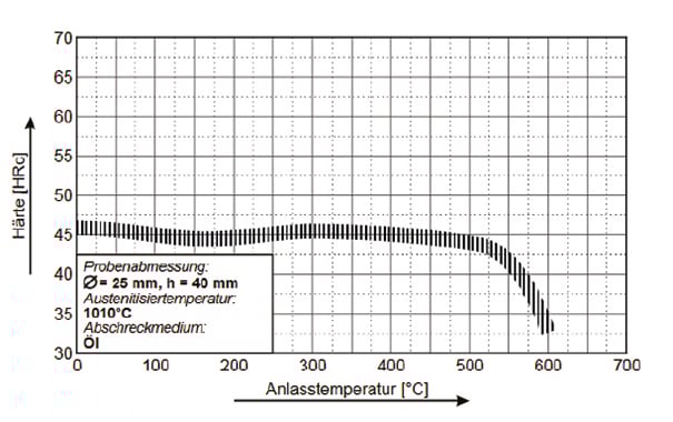 The working hardness for the 1.4057 is at approx. 32 – 47 HRC.