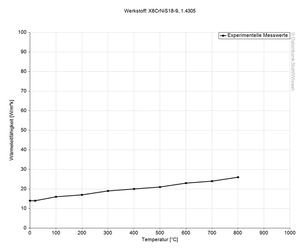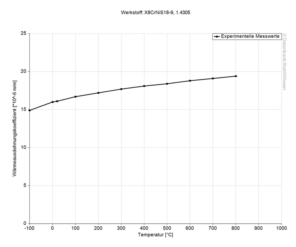 Like other materials, stainless steel 1.4305 can change its dimensions when heated or cooled. Under constant stress at higher temperatures, 1.4305 can creep, a slow and time-dependent deformation.