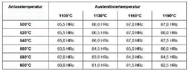 - High-temperature strength (red hardness) due to the addition of approx. 8.5% cobalt